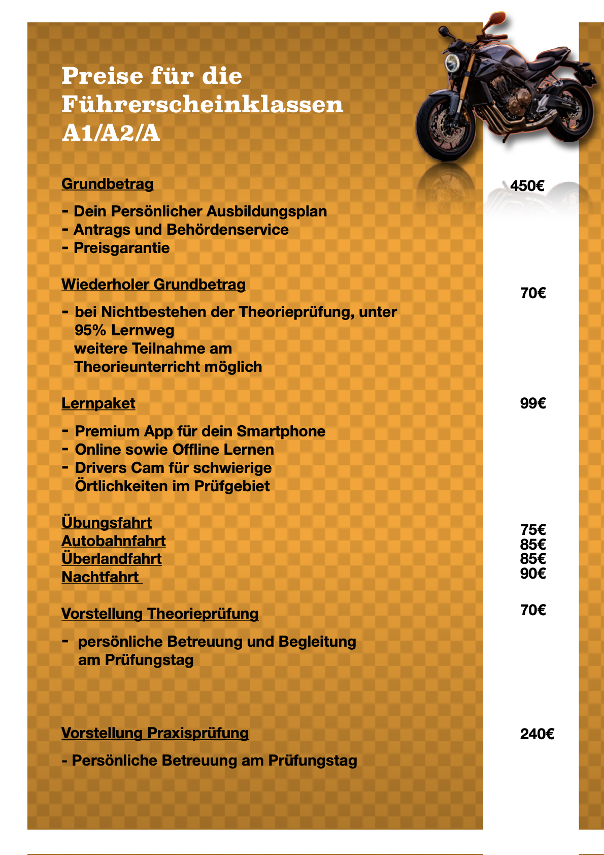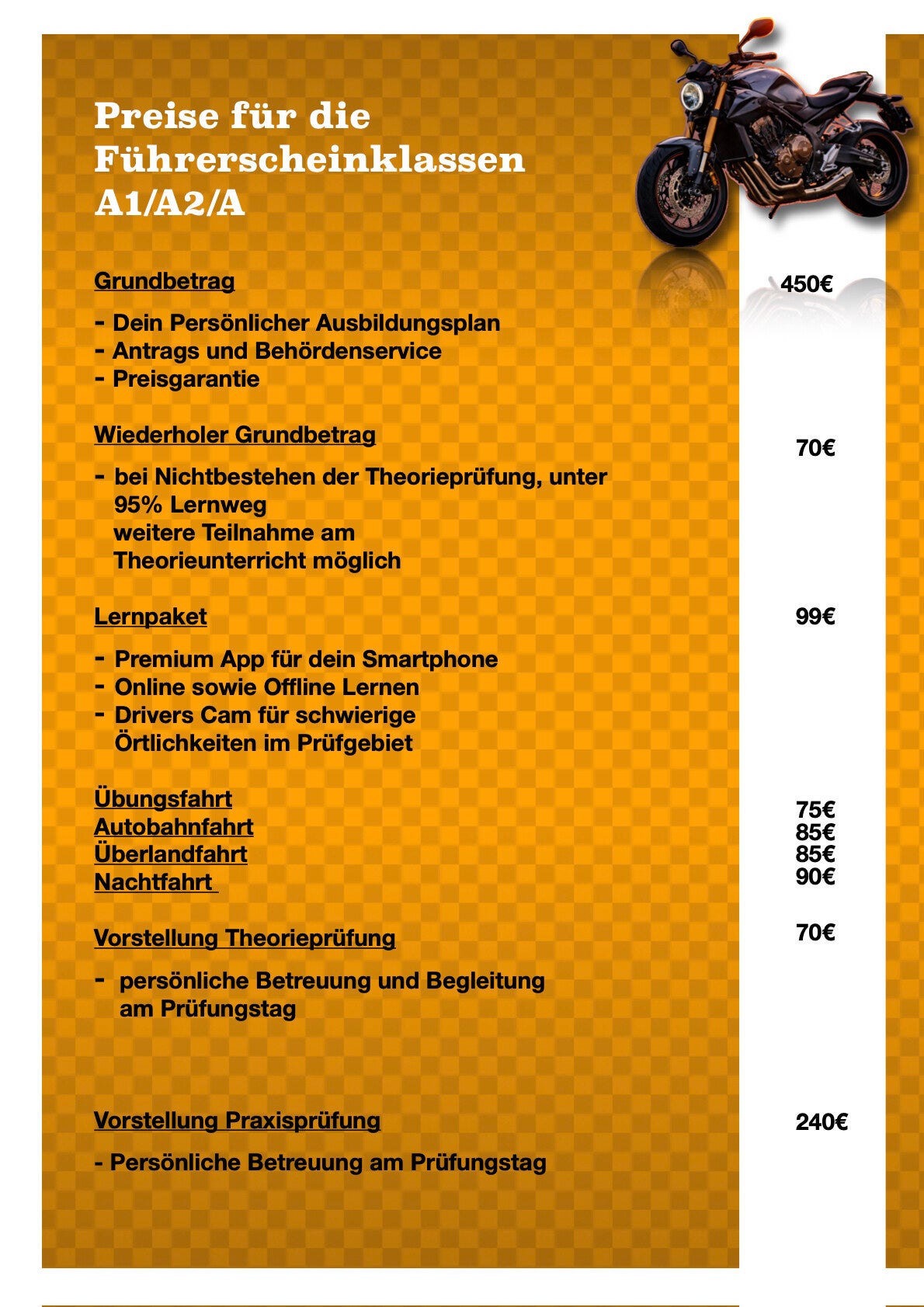 Preise für die Führerscheinklasse A-Aufstieg / A2-Aufstiegt