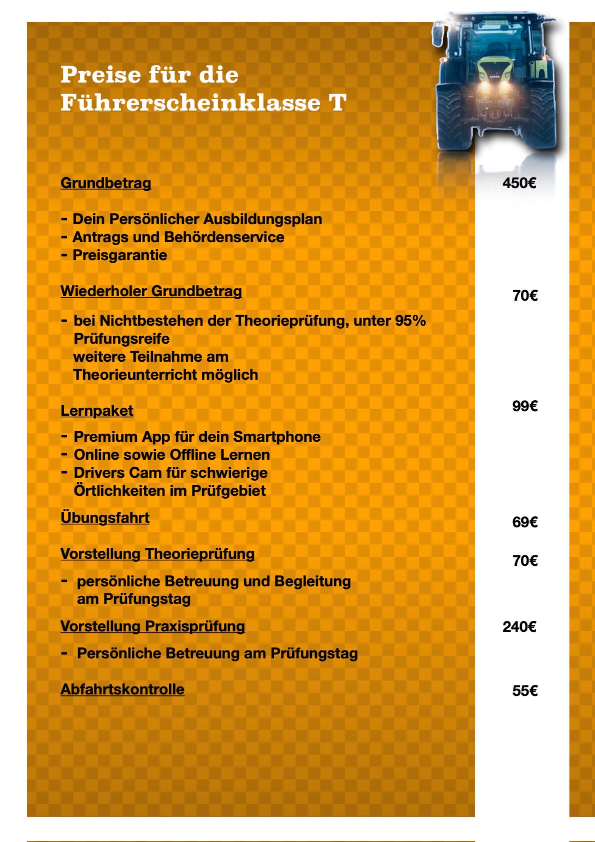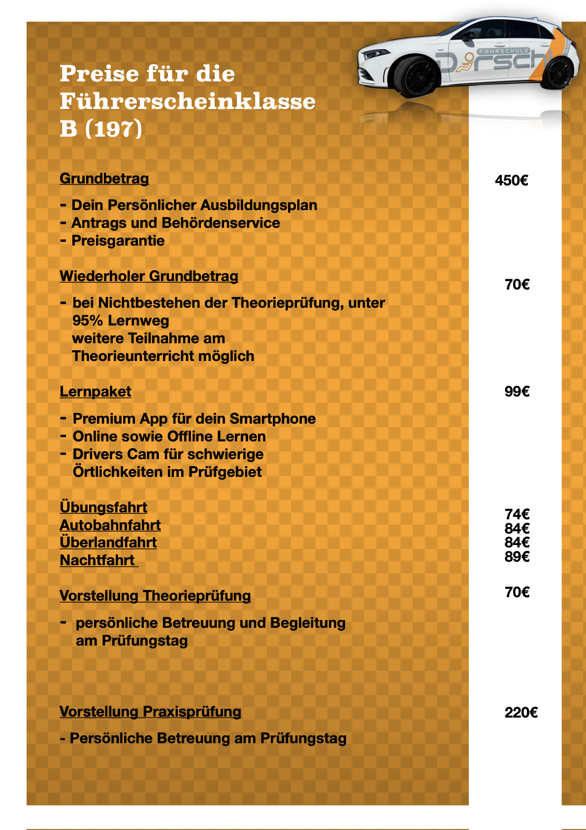 | Vorstellung zur Prüfung Theorie | 70€ |
