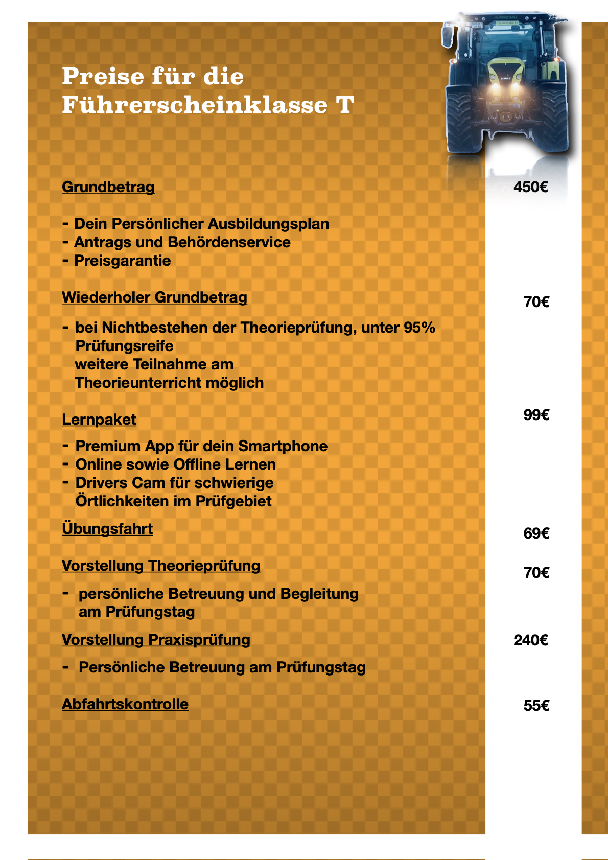 Jede Fahrstunde mit unserem Traktor kostet zusätzlich 60€ a 60min